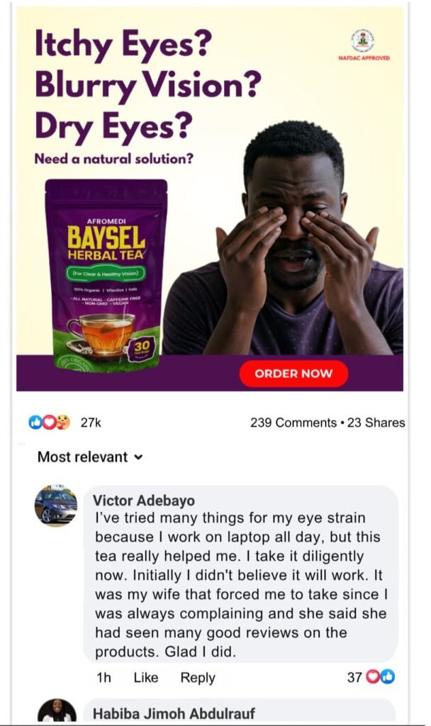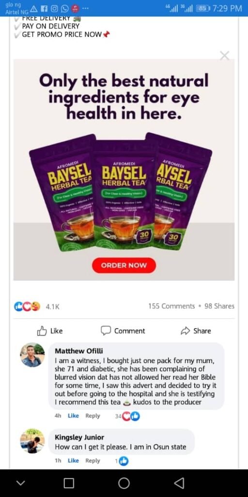 Thousands of Nigerians have used this  herbal solution and thank God, Happy for using Baysel Herbal Tea!