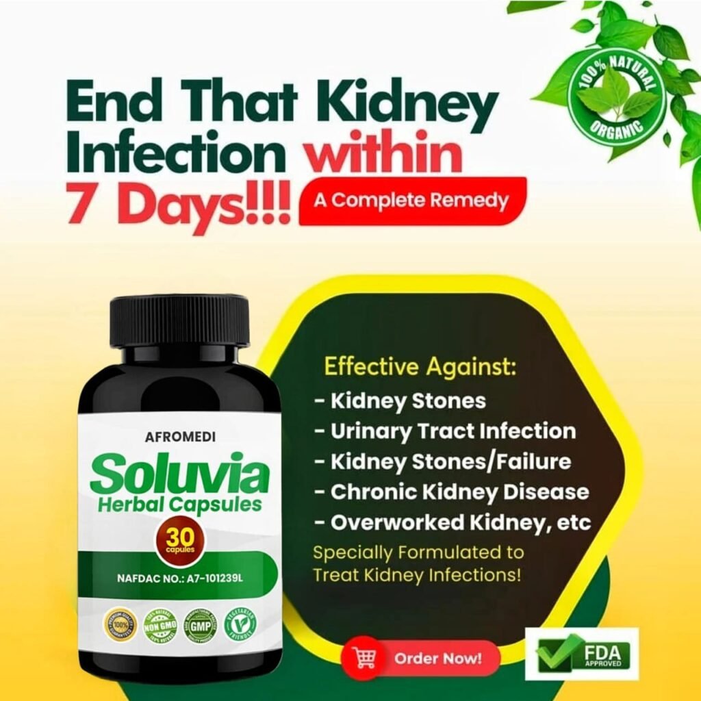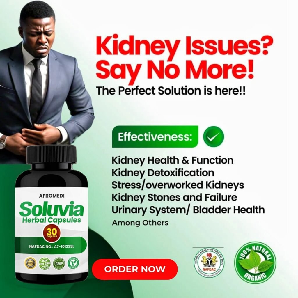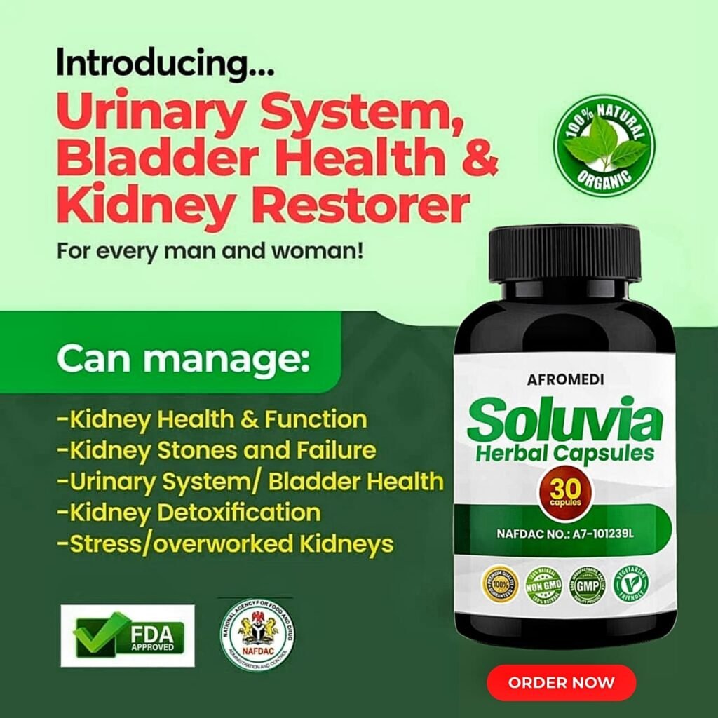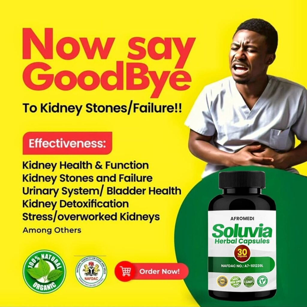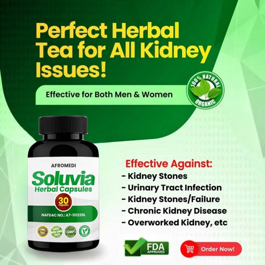 Soluvia Herbal Capsules is a commitment to your health. With its 100% natural and organic formula, it has been trusted by countless Nigerians to combat kidney complications, promote detoxification, and enhance overall kidney health.
